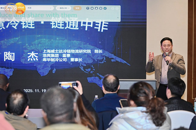 會(huì)議現(xiàn)場(chǎng),上海威士達(dá)冷鏈物流研究院院長(zhǎng)、浙江庫(kù)華制冷設(shè)備工程有限公司董事長(zhǎng)陶杰,結(jié)合非洲農(nóng)業(yè)現(xiàn)狀,分享冷鏈技術(shù)對(duì)非洲農(nóng)業(yè)農(nóng)機(jī)的助力作用,為非洲農(nóng)業(yè)發(fā)展提供冷鏈新思路,助力全球零饑餓,提供新思考。